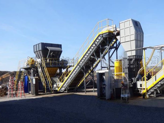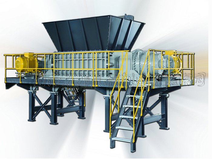 在工作過程中通過與電動機相連的減速機將動力穩(wěn)定的傳入主軸,在主軸的牽引下通過固定于主軸上的撕碎機刀片將進入撕碎機機腔內的廢舊金屬進行卡緊,在刀片卡位的不斷下壓過程中物料被卷入兩軸縫隙,通過雙軸的撕扯作用使物料達到破碎效果,經過破碎后的物料通常呈現(xiàn)條狀或片狀由設備底部濾出經過傳送帶傳送進入料對供其它設備集中處理或直接收集。 該機由于采用的低速大扭矩設計在破碎廢鋼破碎機無法粉碎的廢料過程中性能突出如需對撕碎機破碎后的粗料進行細粉可在購置該套設備有在尾部加裝皮帶上料機通過與廢鋼破碎機的銜接完成整個細碎加工過程,并可通過配套相關設備實現(xiàn)廢料中金屬、塑料、玻璃的分類回收。